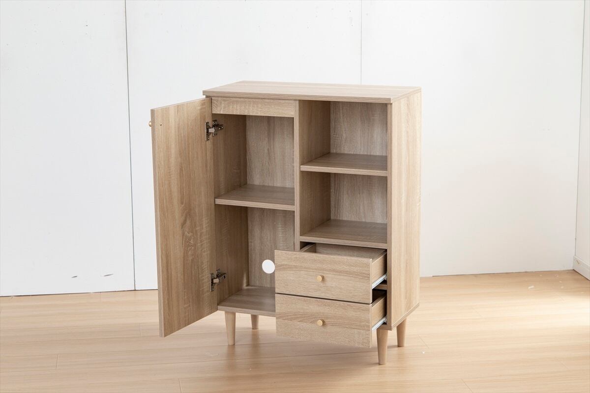 コンパクトさと収納力を両立した『Lucas(リュカ)』シリーズの脚付きキャビネット