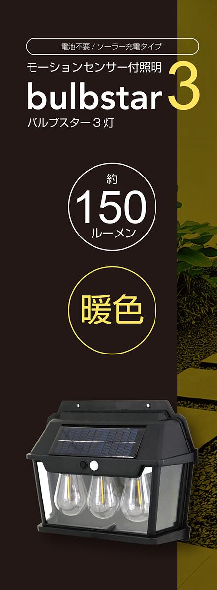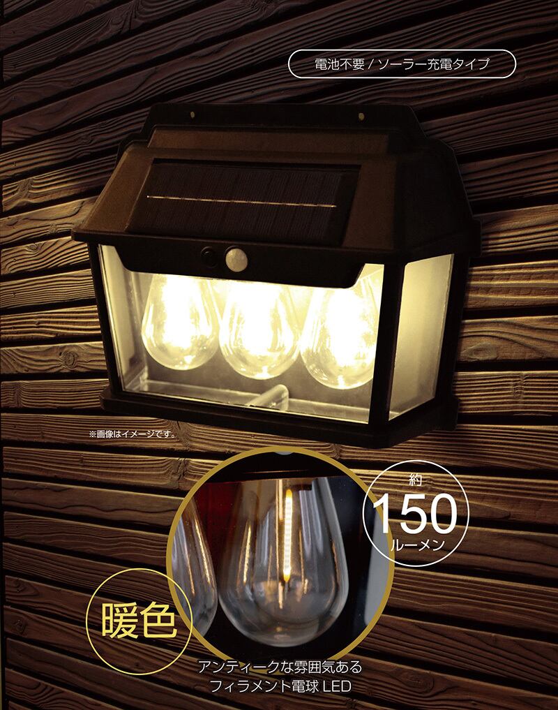 連続点灯時間:約10時間(弱点灯/太陽光にて晴天10時間充電時)