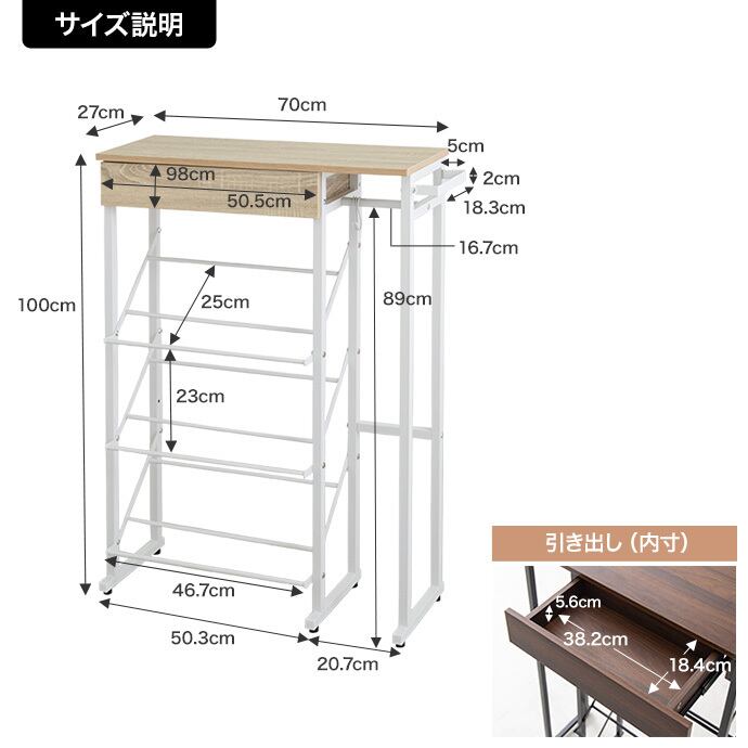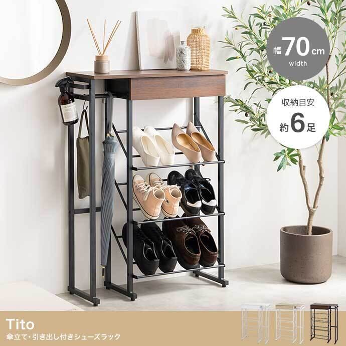 幅70cm】Tito 傘立て・引き出し付きシューズラック