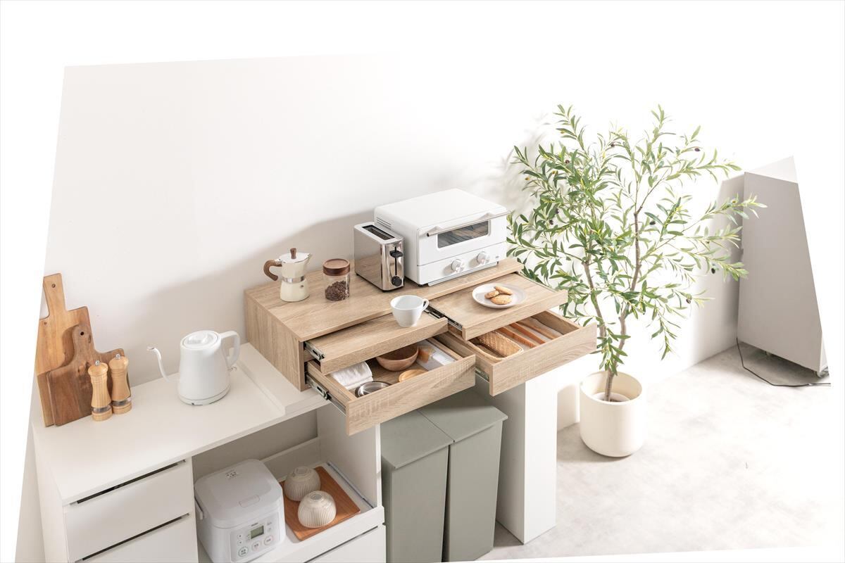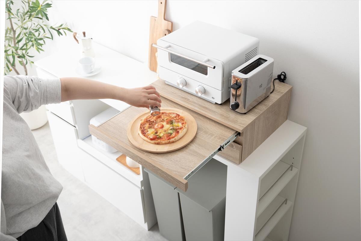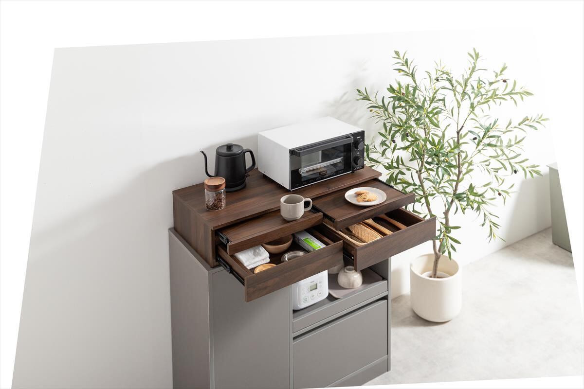 【幅80cm】Cammy 引き出し付レンジ下スライドトレー
