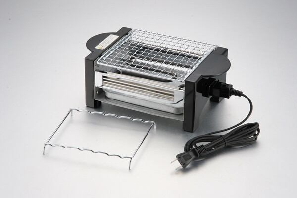 サイドバーを使い、焼き鳥を串ごと引っ掛けるように焼くことができ、付属の網で焼肉やおもちなども焼けます。