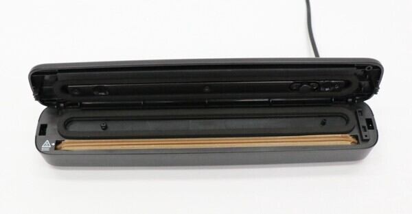 ●操作は簡単!吸引ボタンを2回押すと袋内の空気を吸引後に袋を密封します。柔らかいものは空気を抜かずに密封のみも可能