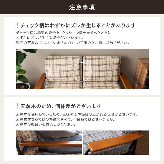 ※チェック柄は縫製の都合上、クッション同士を並べたときにわずかにズレが生じる場合がございます。