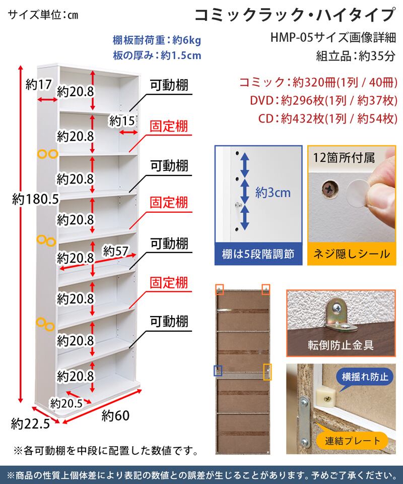 4枚が可動棚になります(サイズ画像参照)
