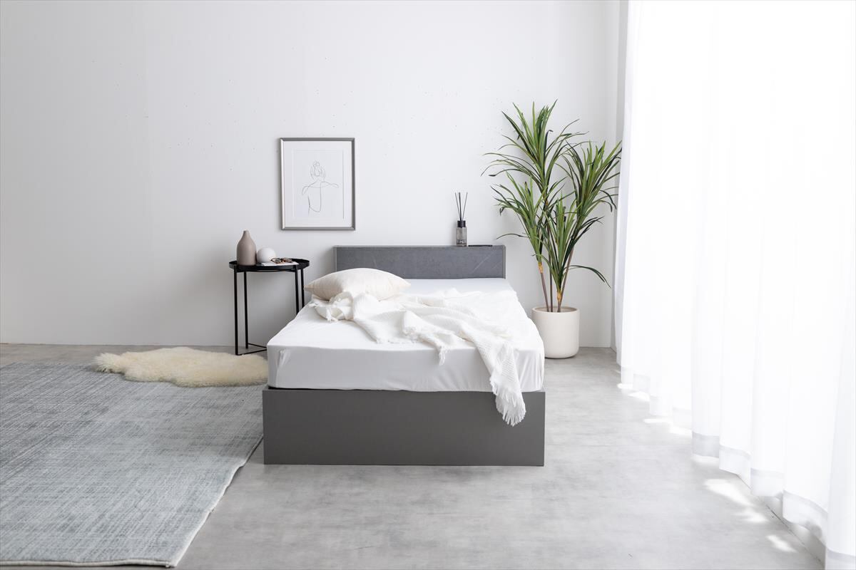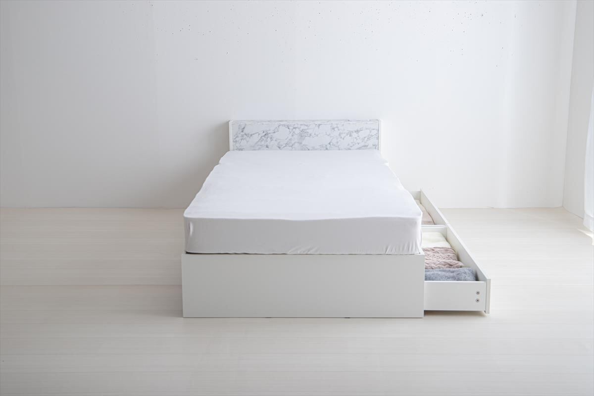 ストーン柄が高級感漂う『Raffine(ラフィネ)』宮棚&コンセント付き引き出し収納ベッド