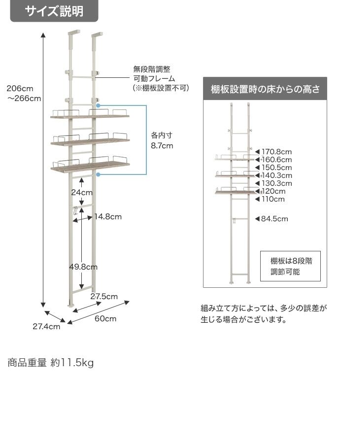 幅60cm×奥行27.4cm×高さ206?266cm