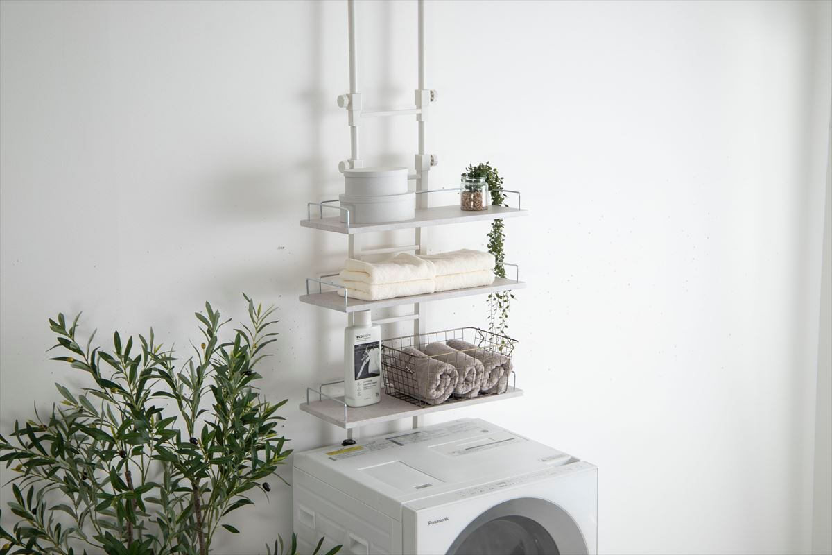 壁に穴をあけることなく、簡単に壁面収納ができる『Seina(セイナ)』突っ張りランドリーラック
