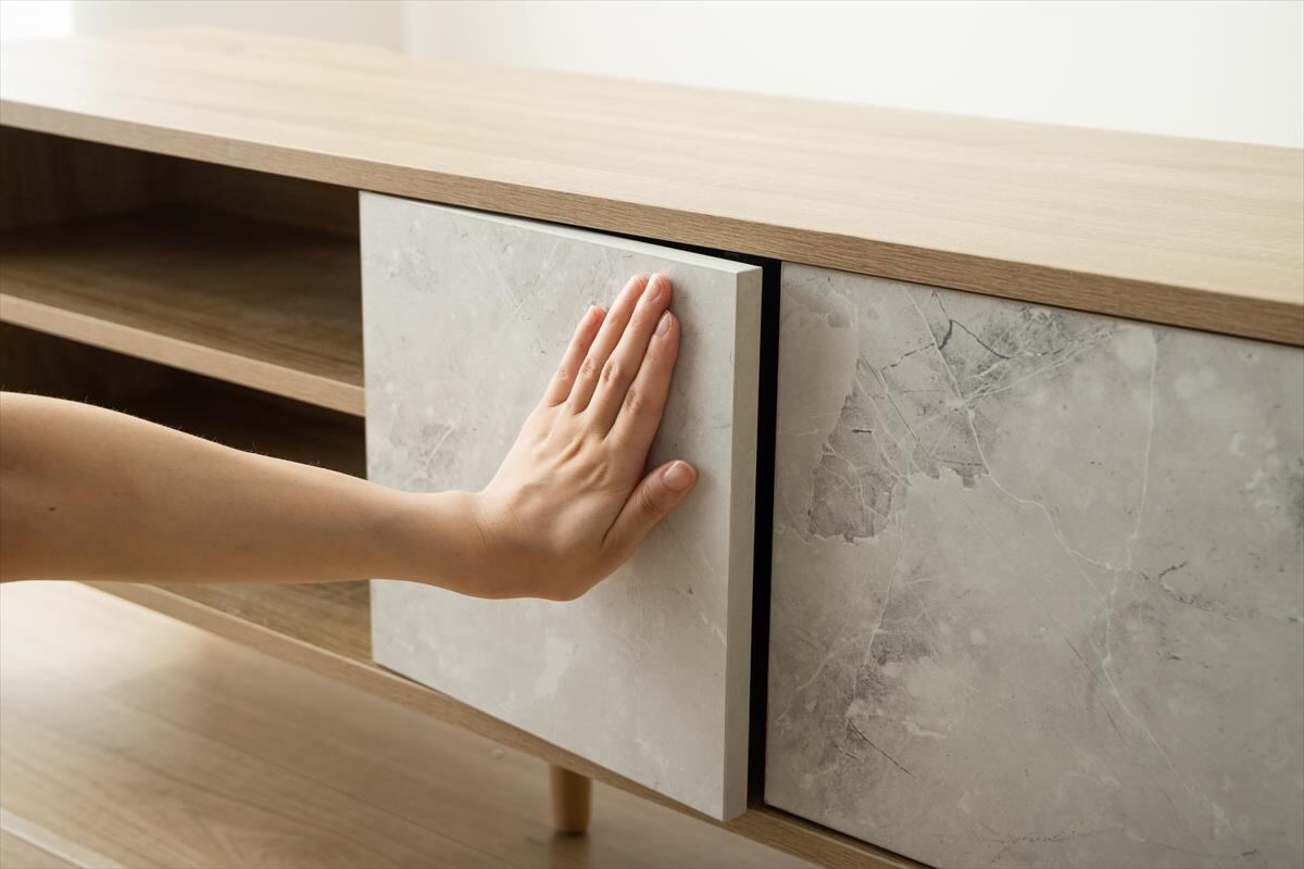 美しい木目×ストーン柄のバイカラーデザインがおしゃれな『Tas(タシュ)』シリーズのテレビボード