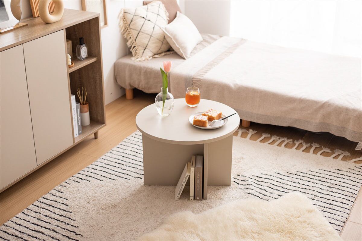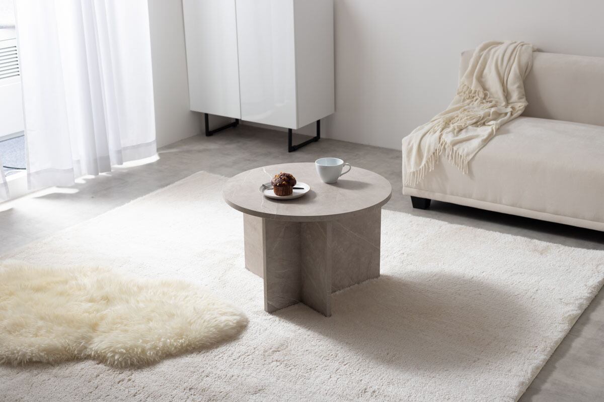 丸い天板と個性的な脚部がこなれた空間を演出する『Luna(ルナ)』ラウンドセンターテーブル