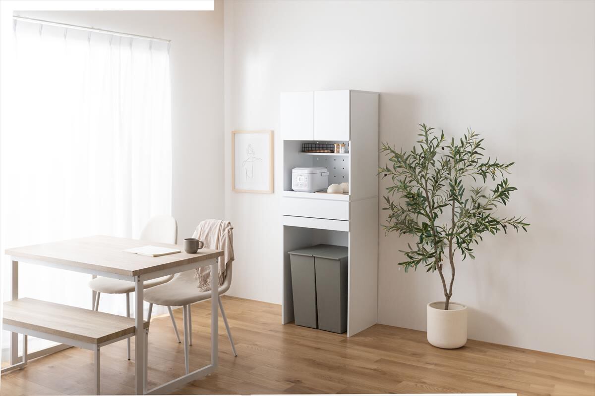 限られたスペースを無駄なく使える『Keuken(クークン)』ゴミ箱収納付きレンジ台