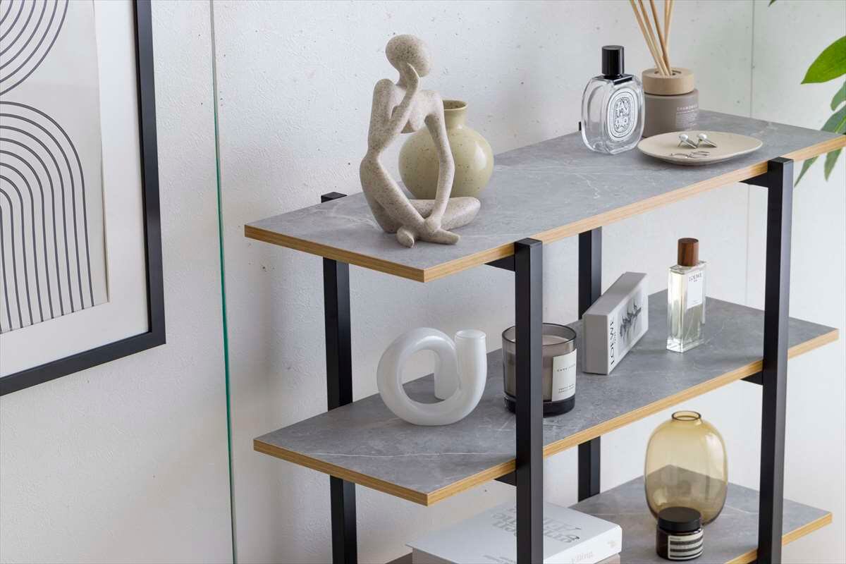 木目調とストーン調の組み合わせがおしゃれに演出する『Pesci(ペッシ)』シリーズのオープンラック