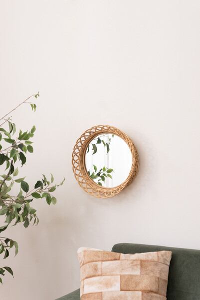 仕様ラタン ラッカー塗装 ミラー ※ミラー部サイズ:Φ28.5cm