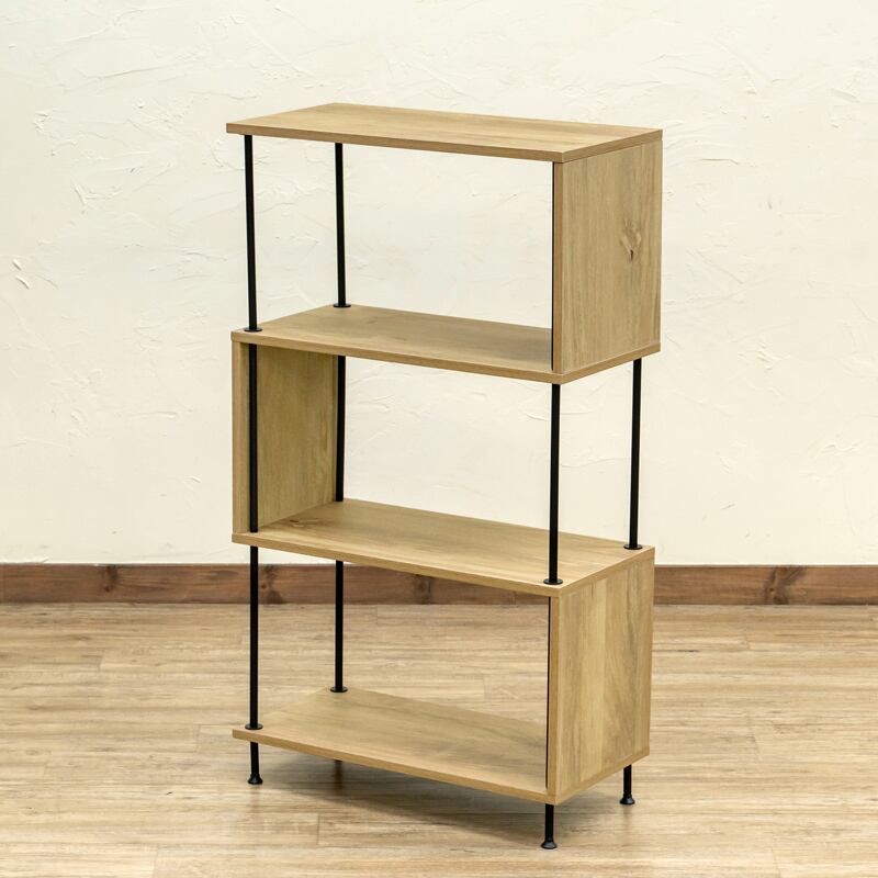 スリムなスチールフレームとヴィンテージテイストの木目調天板を組み合わせた、風通しがよく「見せる収納」を楽しむことができるオープンラック。