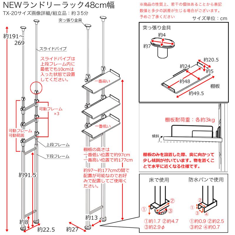 幅495×奥行270×高さ1910~2690mm(梱包サイズ:幅970×奥行275×高さ100mm)