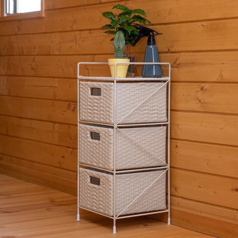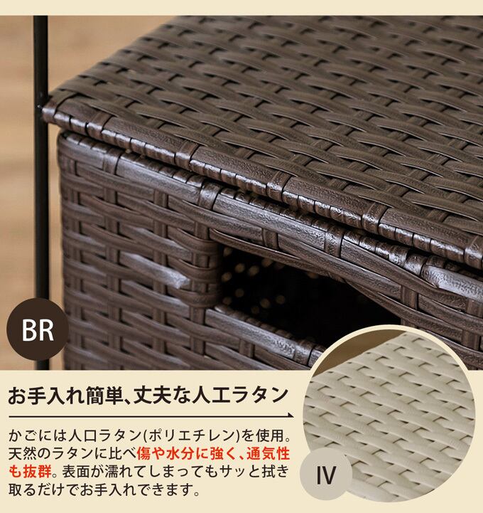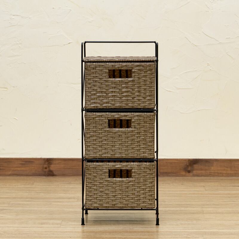 ラタン調 収納ラック 3段 BR/IV/CM/GY