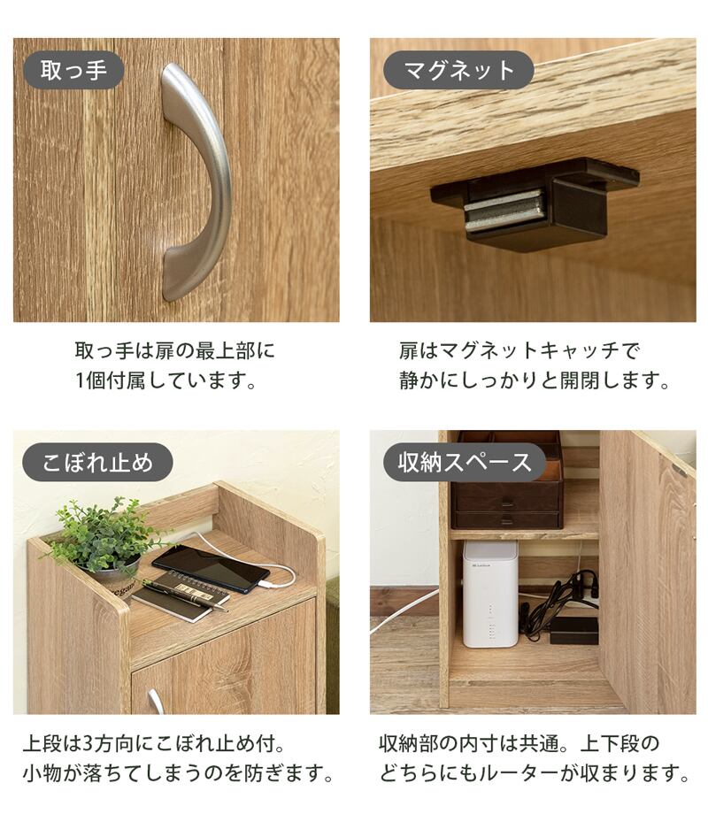 扉付きで配線を隠してスッキリ見せることができます