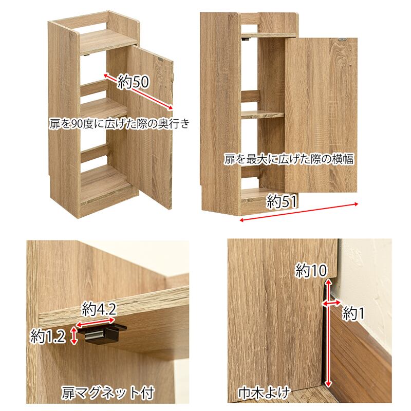 背面下部には巾木よけの加工が施されています