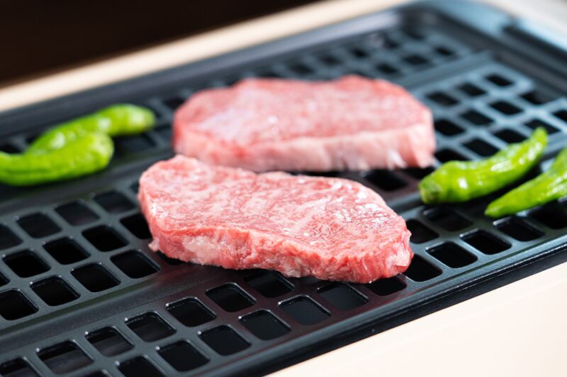美味しく焼ける最適な温度は210~250度とされています。当商品の表面温度は約210~250度をキープし、お肉を美味しく焼きなおかつ煙を出にくい仕様!