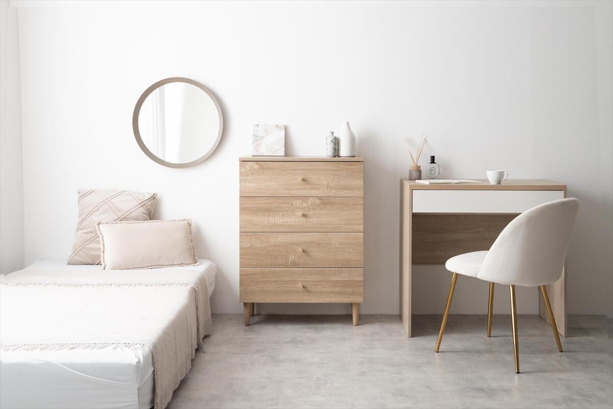 木の温かみを感じるリアルな木目調とゴールドのあしらいが目を惹く『Lucas(リュカ)』シリーズのチェスト