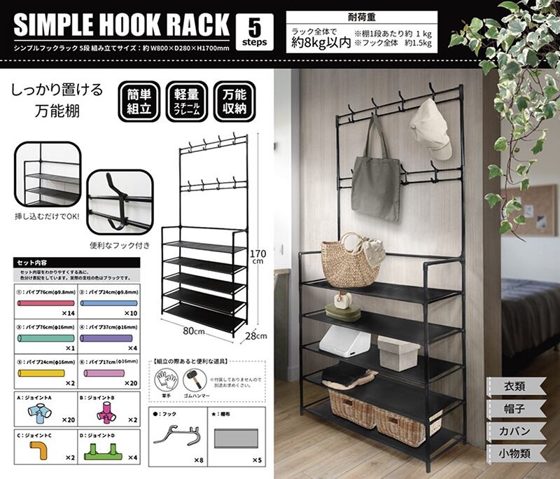 仕様:ラック5段、フック8箇所