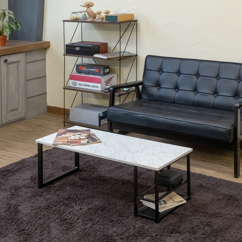 スチール脚と木目調天板を組み合わせた、アンティークな風合いのセンターテーブルです
