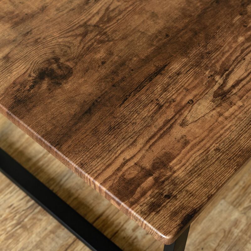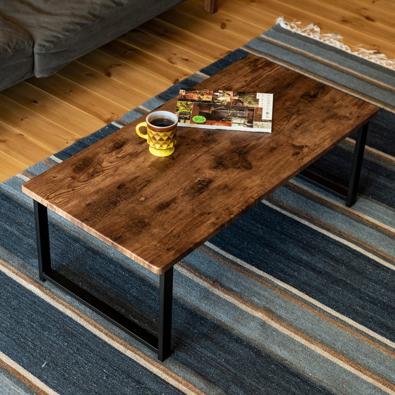 木目調の天板とスチール脚のテーブルです