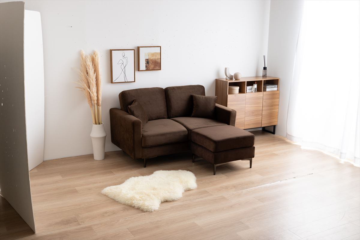 上質な空間へと導き、ゆったりくつろげる『Ally(アリー)』シリーズの2人掛けベロアソファ+オットマン