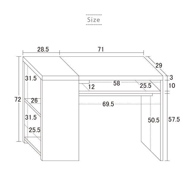 【商品サイズ】デスク:約 横99.5×奥行29×高さ72cm