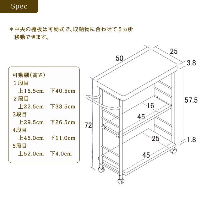 ●25cmとスリムなので、すきま収納としてもお使いいただけます。