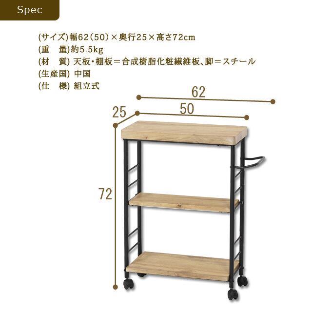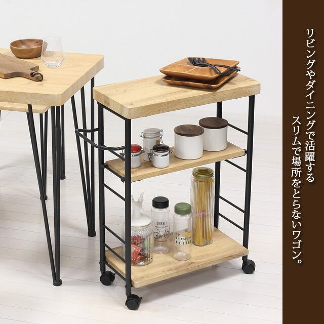リビングやダイニングで活躍するスリムで場所をとらないワゴンです。