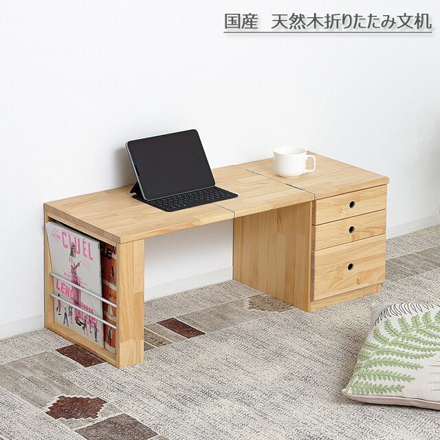 使うときは広げて、使用しない時はコンパクトになる便利な天然木の文机!