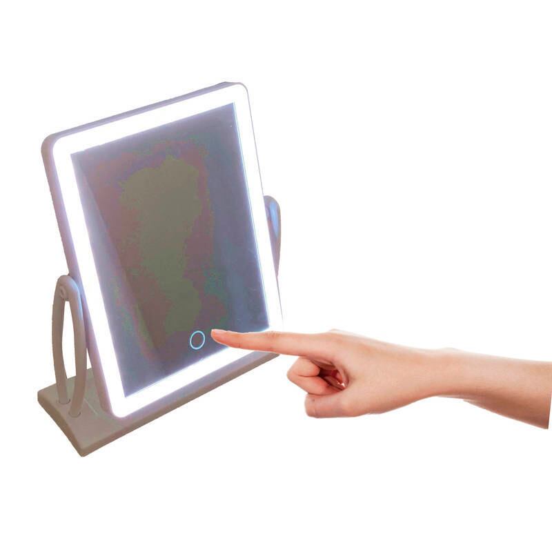 タッチセンサーで明暗度を調整!明るくはっきり見ながらメイク・調光ライト(無段階調節)・360°角度調節可能・小物入れ付