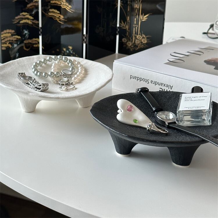 三本足 陶磁器収納トレイ 大人気 アクセサリー収納 アロマパレット 芸術感 玄関収納