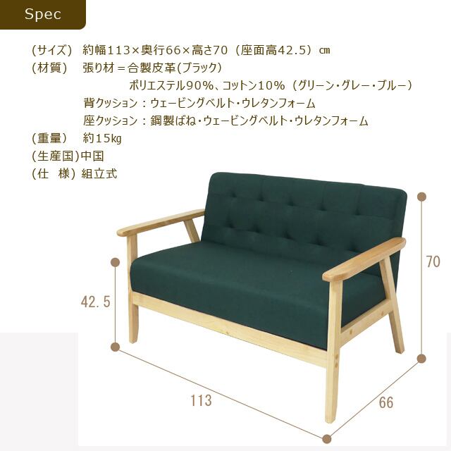 【商品サイズ】約 幅113×奥行66×高さ70 (座面高42.5) cm