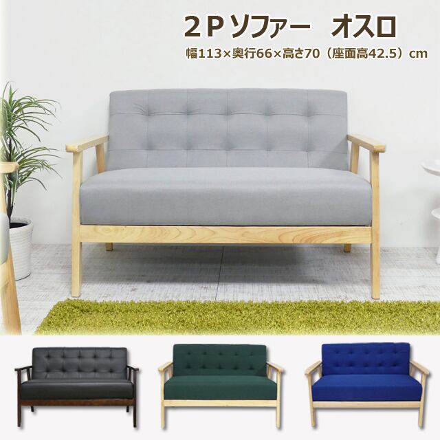 2Pソファ オスロ(ブラック)(グレー)