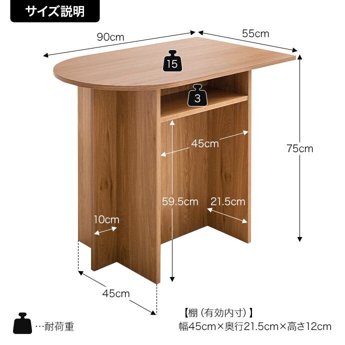 【耐荷重】天板:約15kg 、棚:約3kg